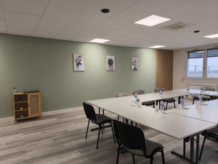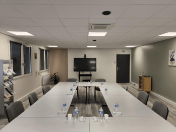 Equipements inclus dans la location de salle : écran multimédia, système de visio-conférence, paperboard, wifi